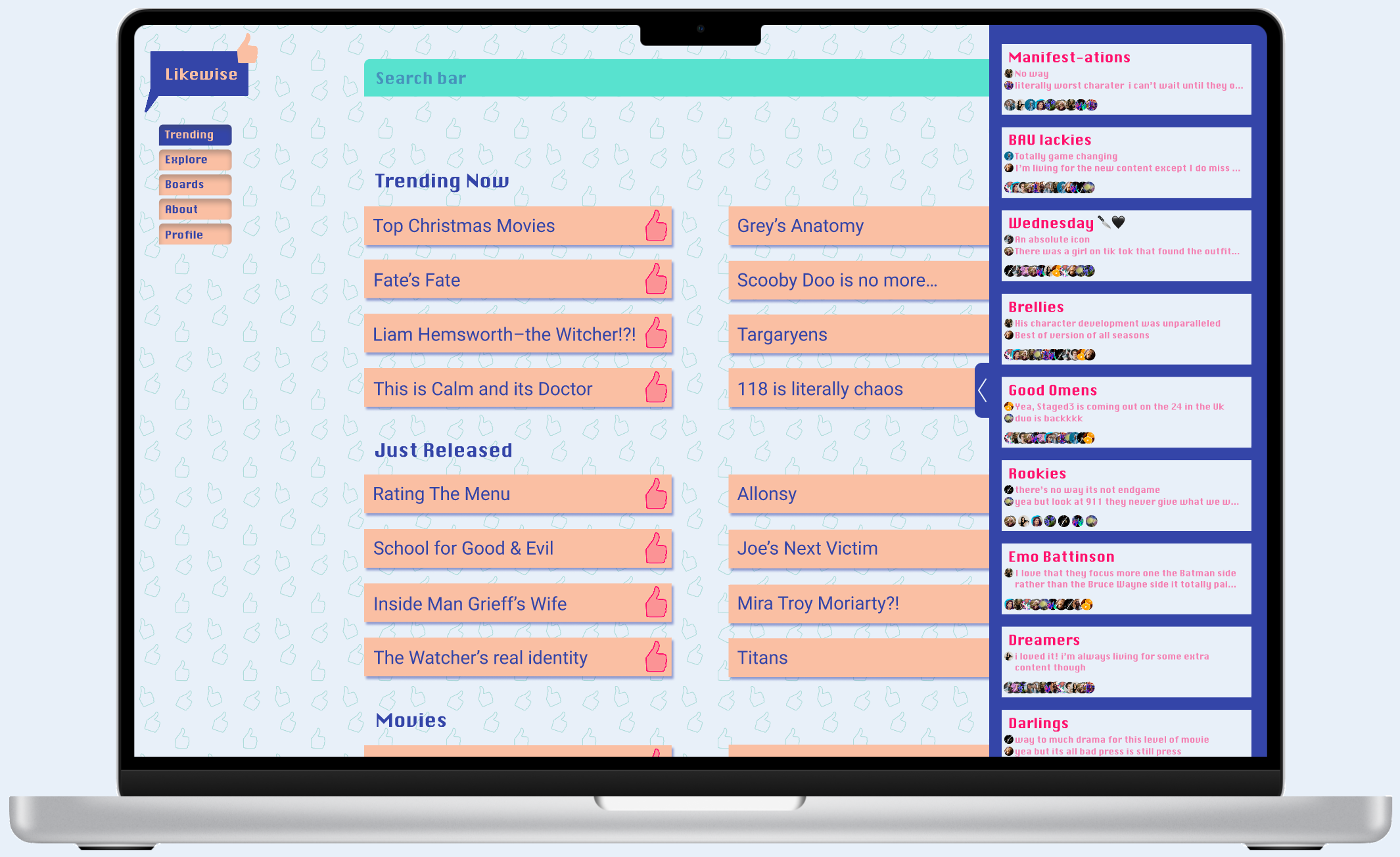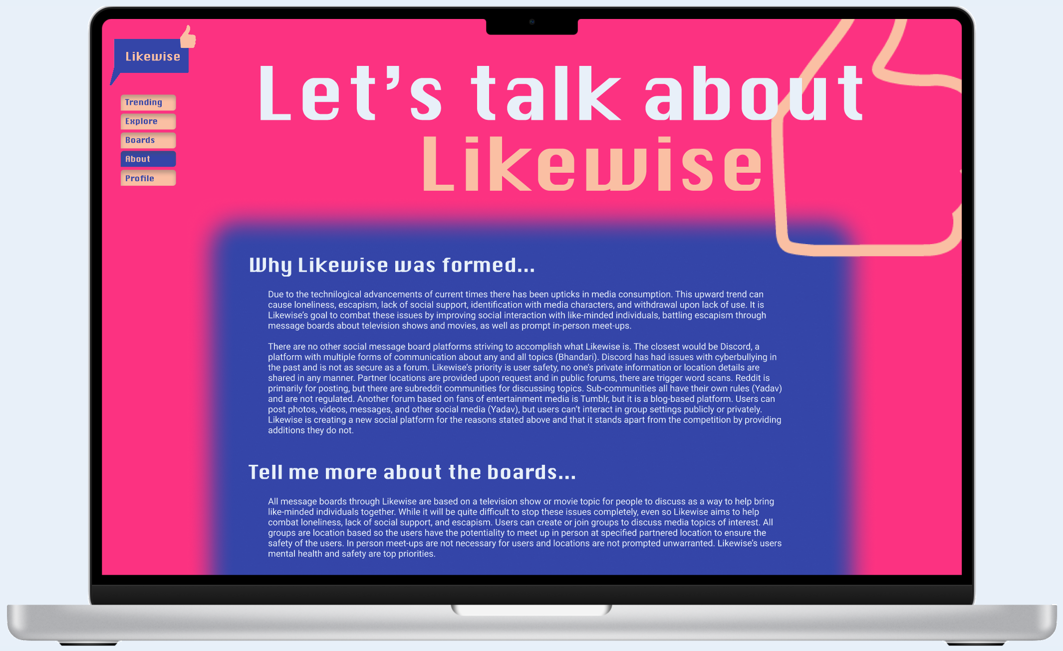 Likewise is an online messaging platform focused solely on entertainment media. This platform’s goal is to combat social isolation and escapism caused by growing technology usage.